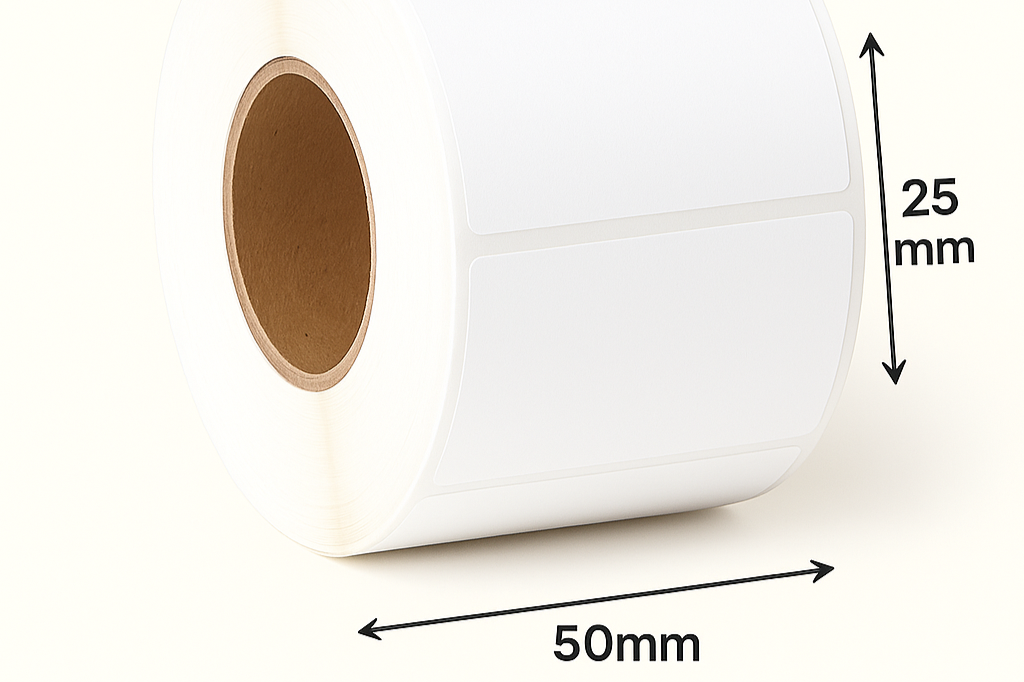 Compact 50mm × 25mm barcode labels for retail, warehouses, and inventory management.
